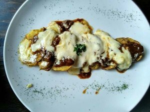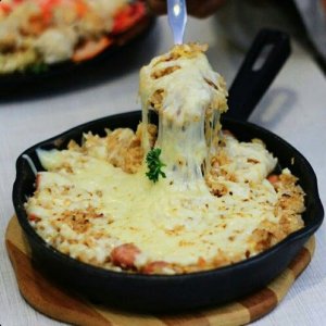 Makanan Bolognaise Potato dan Melted Cheesy Rice atau Melted Cheesy Pasta yng termasuk menu paling direkomendasikan ini sangat lezat karena diberi topping saus bolognaise, krim, serta lelehan keju mozzarella yang melimpah di atasnya.
